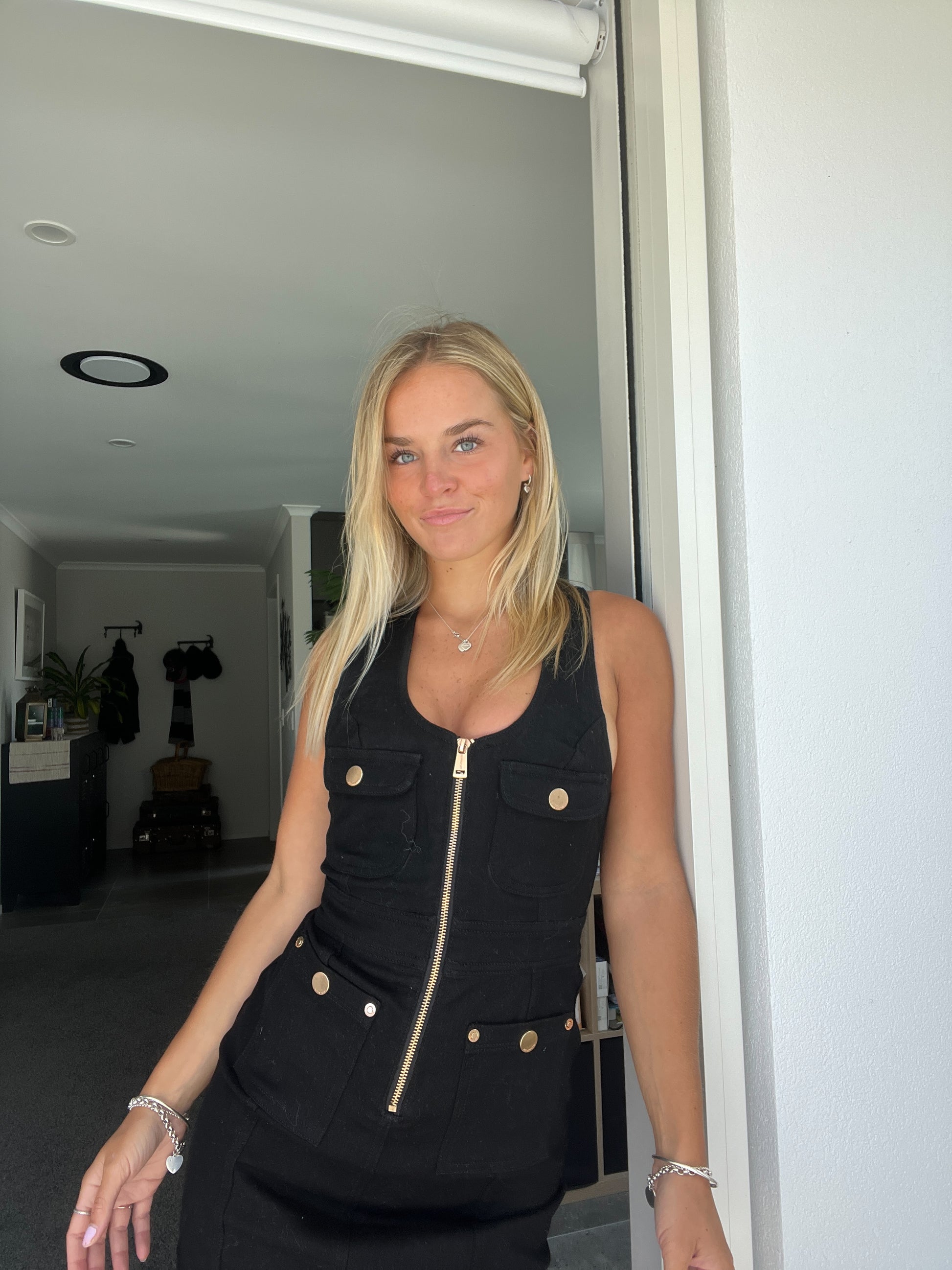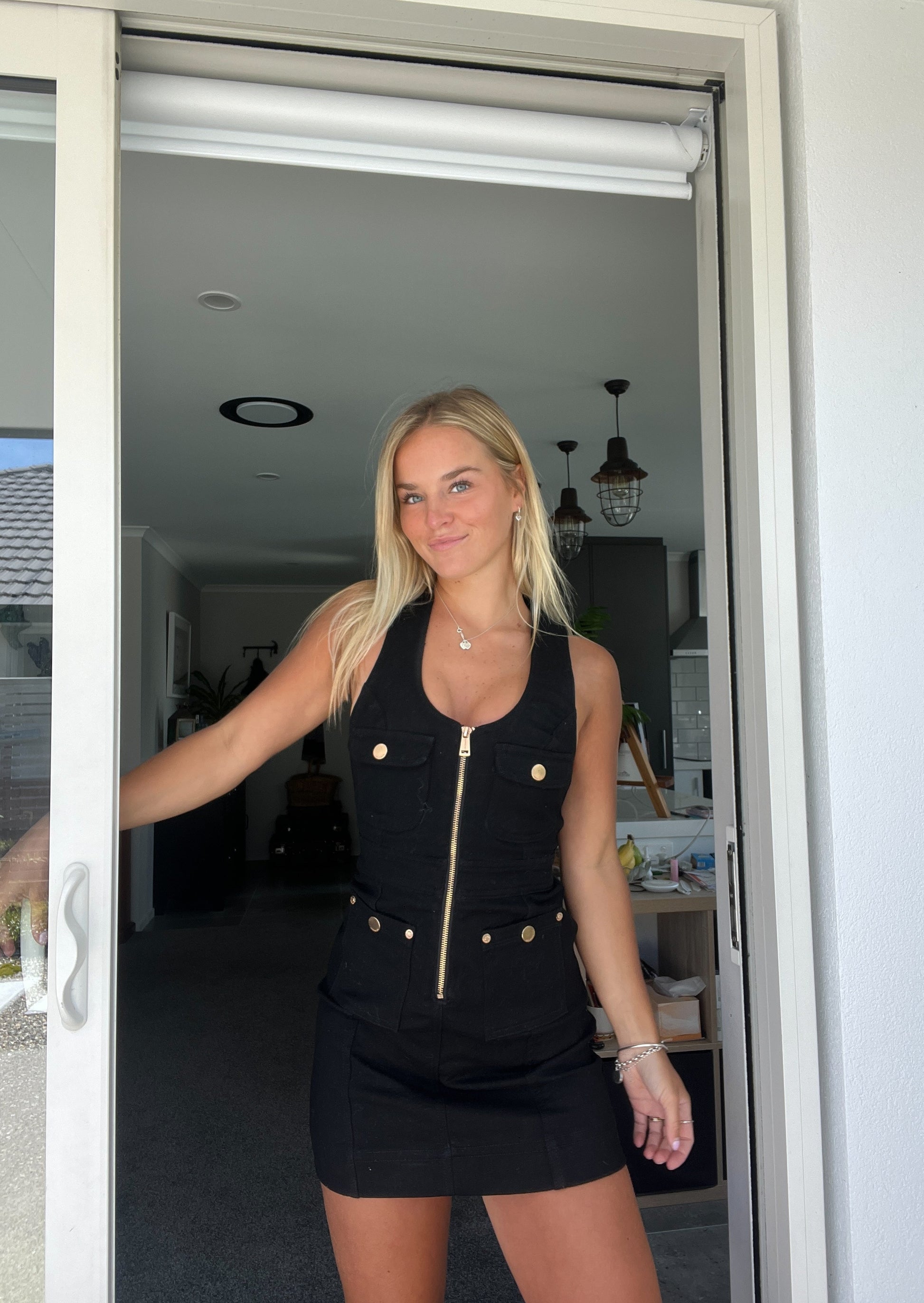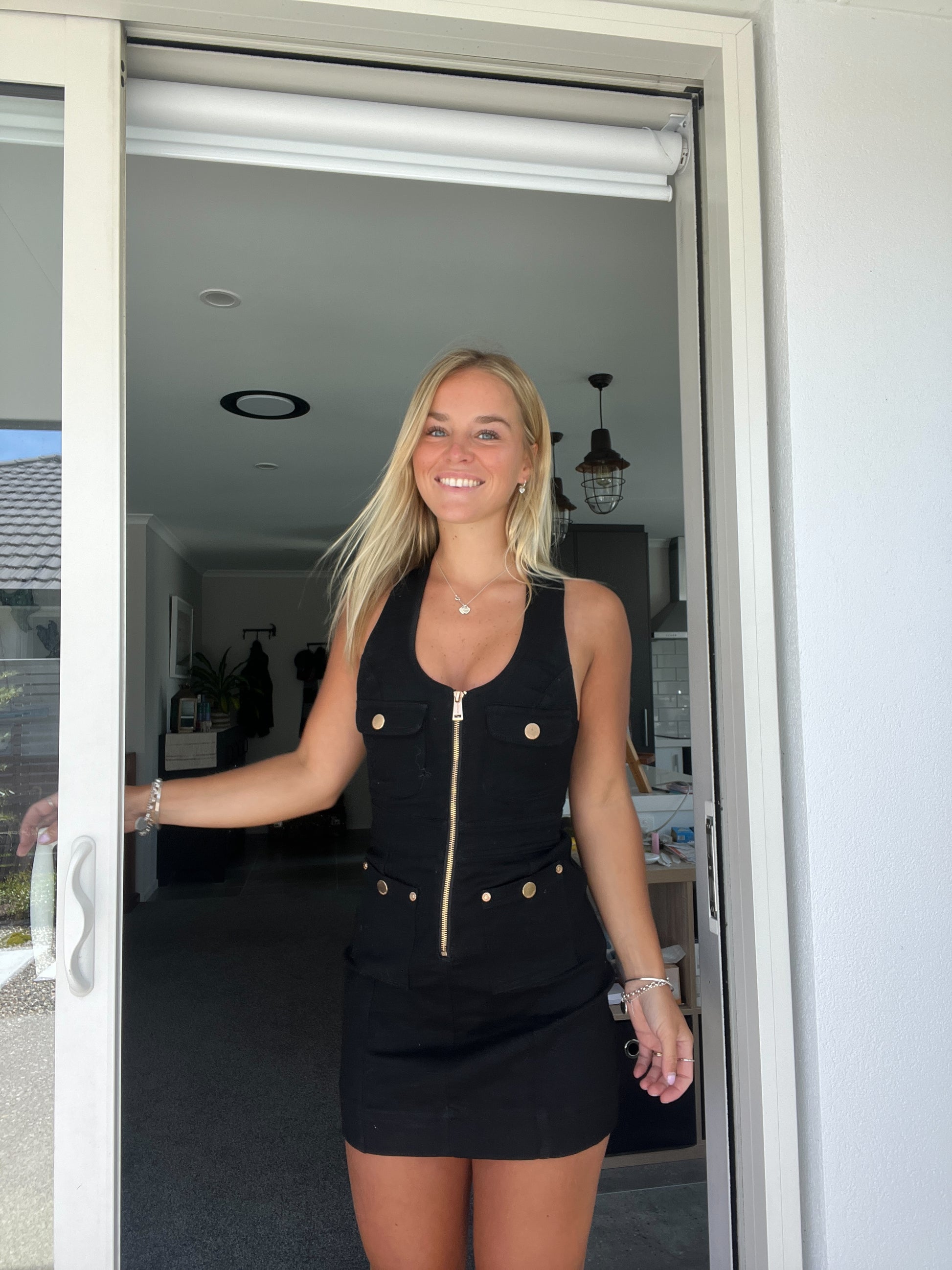 No Alice McCall collection is complete without staple denim. The Club Noir Mini Dress can be worn out at night with some heels or during the day with strappy sandals. It has a scooped neckline and gold metal hardware on the pockets. - Exposed zipper at front