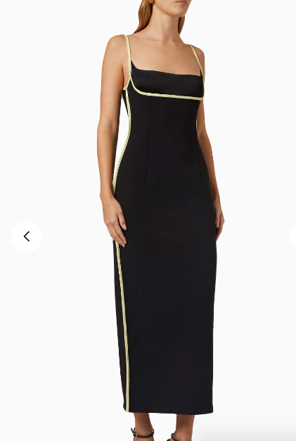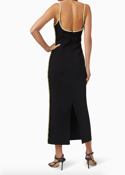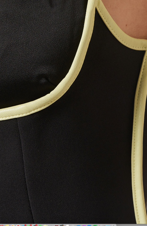 A sculpted dress with contrast sateen bust and contrast Vegan leather binding. The Florian Dress is form fitting and fits true to size. Note: Due to popular feedback we have shortened the straps on this dress in order to fit better!