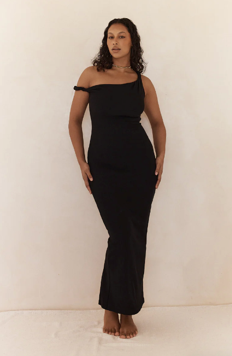 Our most flattering silhouette in cotton ribbed stretch Jersey. This full length number features asymmetrical neckline and our signature twist straps, one off-the shoulder exposing your décolletage. The Poppy dress exudes elegance and sexy which is how it makes you feel while wearing it. Perfect for date night or long lunches.