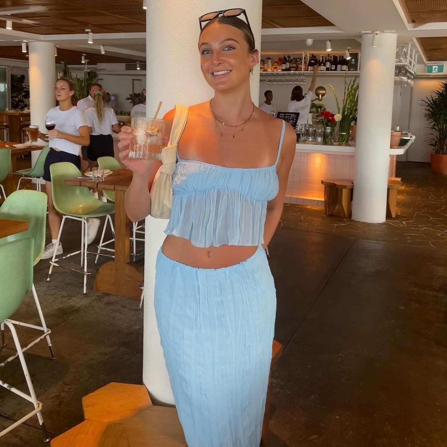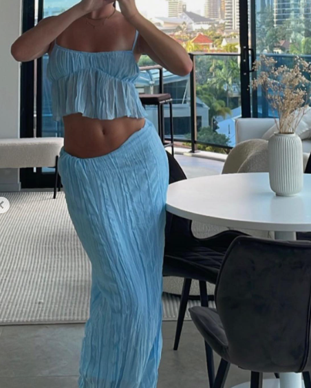 Time to RSVP for those summer holiday parties! We have the perfect fit! This Blue Cami paired with the matching maxi skirt.
