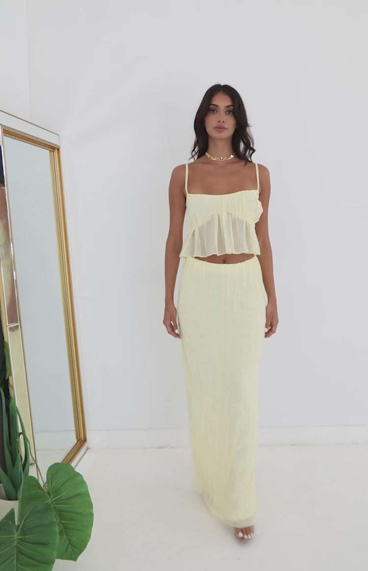 Time to RSVP for those summer holiday parties! We have the perfect fit! This Yellow Cami paired with the matching maxi skirt.